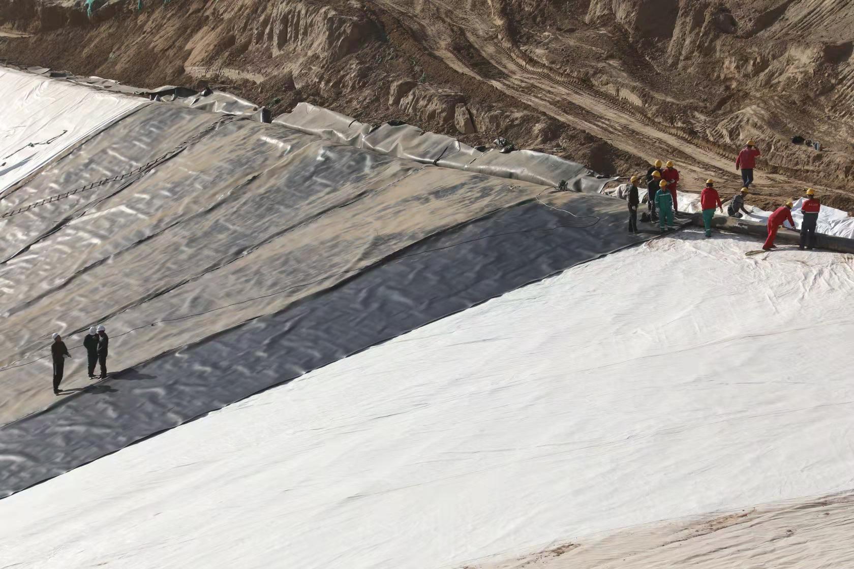 針對(duì)這些問(wèn)題,該公司副總經(jīng)理陳雨一一解答了記者的疑問(wèn):“‘巨坑’原是一處廢棄的溝地,面積約300畝?,F(xiàn)經(jīng)特殊處理后作為鉆井巖屑的處置填埋場(chǎng),對(duì)其進(jìn)行無(wú)害化處理?!萏铩强茖W(xué)合理化設(shè)計(jì),既迎合自然地貌屬性,也有防汛、導(dǎo)流等人工科學(xué)化預(yù)處理,雙重增強(qiáng)填埋場(chǎng)的地理穩(wěn)固性。工人們正在鋪設(shè)防滲膜。車(chē)上拉的都是固體巖屑。這個(gè)‘泥漿不落地’工藝流程的每個(gè)細(xì)節(jié)不管是在填埋場(chǎng)還是鉆井現(xiàn)場(chǎng)均有體現(xiàn)……”