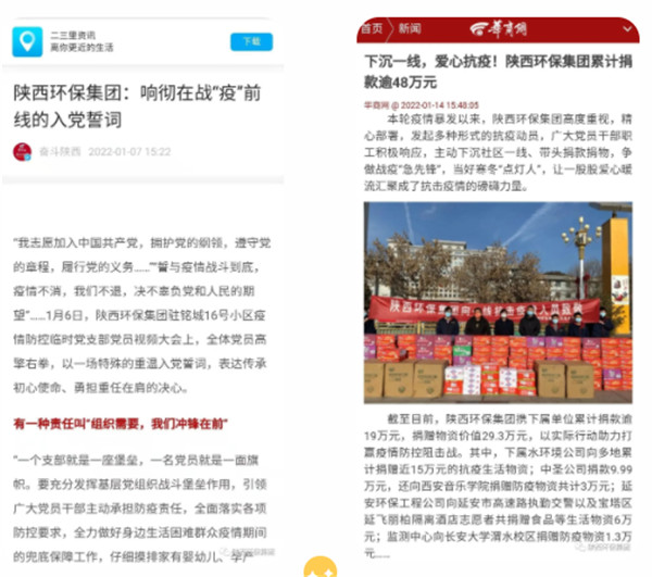 2022年1月1日、11日、12日,學(xué)習(xí)強(qiáng)國對(duì)陜西環(huán)保集團(tuán)沖鋒在一線的志愿者進(jìn)行報(bào)道。